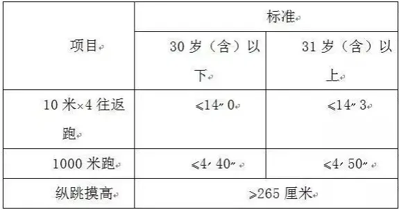 參照《關(guān)于印發(fā)公安機(jī)關(guān)錄用人民警察體能測評項(xiàng)目和標(biāo)準(zhǔn)(暫行)的通知》(人社部發(fā)〔2011〕48號)的項(xiàng)目及測試規(guī)則,結(jié)合《公安民警體育鍛煉達(dá)標(biāo)手冊》成績標(biāo)準(zhǔn),本次體能測評的項(xiàng)目和標(biāo)準(zhǔn)如下: