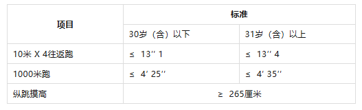 報考人員須參加全部三項體能測評。參加者凡有其中一項不達標(biāo)或放棄,視為體能測評不合格。體能測評合格,方可進入下一環(huán)節(jié)。