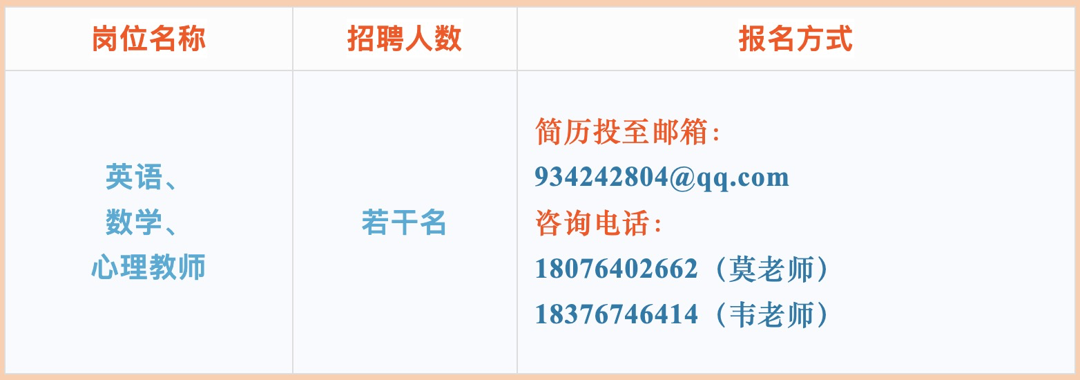 報(bào)名實(shí)行網(wǎng)絡(luò)形式,有意者請(qǐng)將簡(jiǎn)歷投至學(xué)校郵箱934242804@qq.com。具體面試時(shí)間電話(huà)通知。