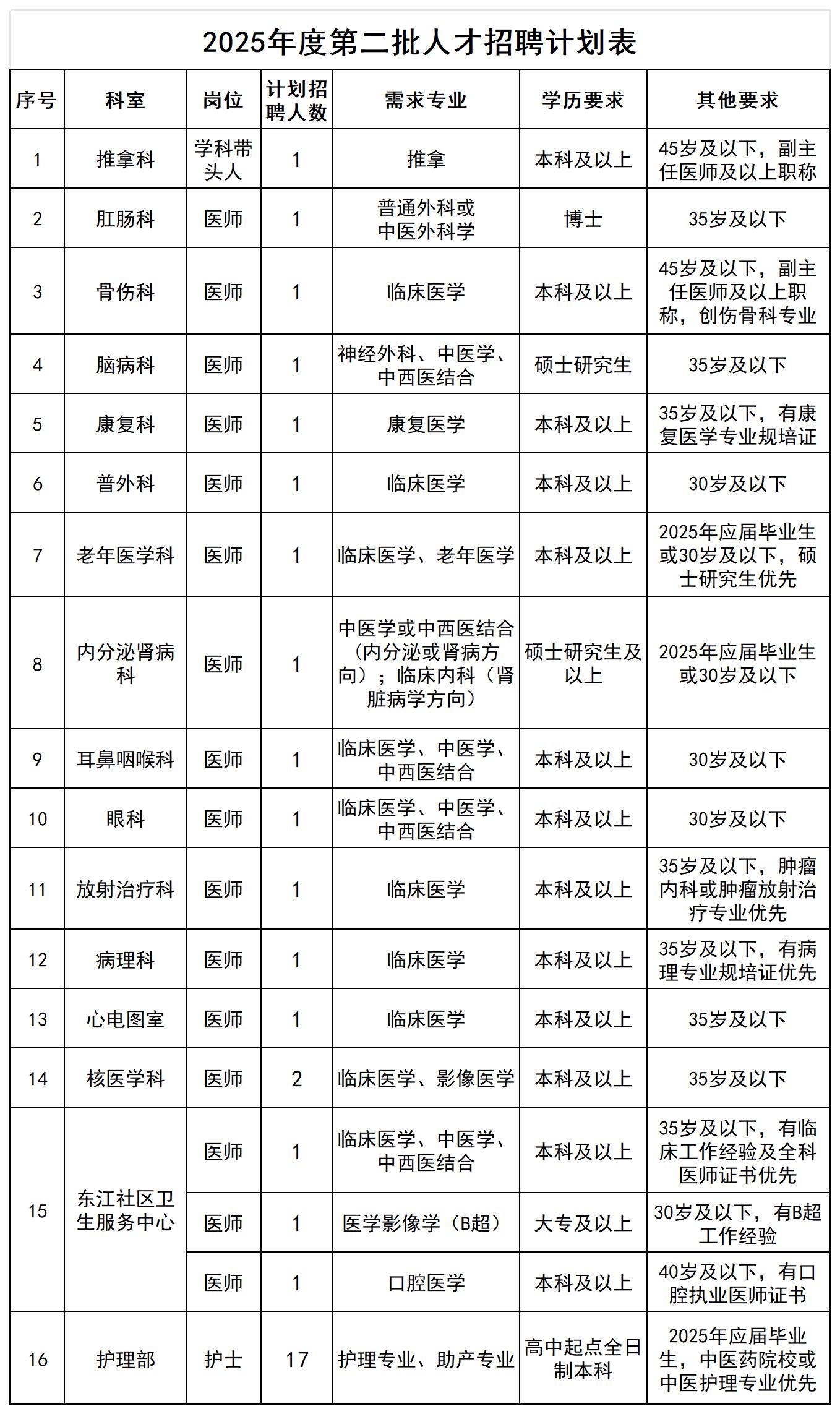 (一)醫(yī)師、藥師:碩士研究生及以上學(xué)歷要求專業(yè)型全日制碩士研究生及以上學(xué)歷、碩士及以上學(xué)位;本科及以上學(xué)歷要求第一學(xué)歷為國家統(tǒng)招的全日制本科及以上學(xué)歷(不含專升本),且具有學(xué)士及以上學(xué)位;醫(yī)師崗位中醫(yī)學(xué)類專業(yè)均不含針灸推拿學(xué)專業(yè)。