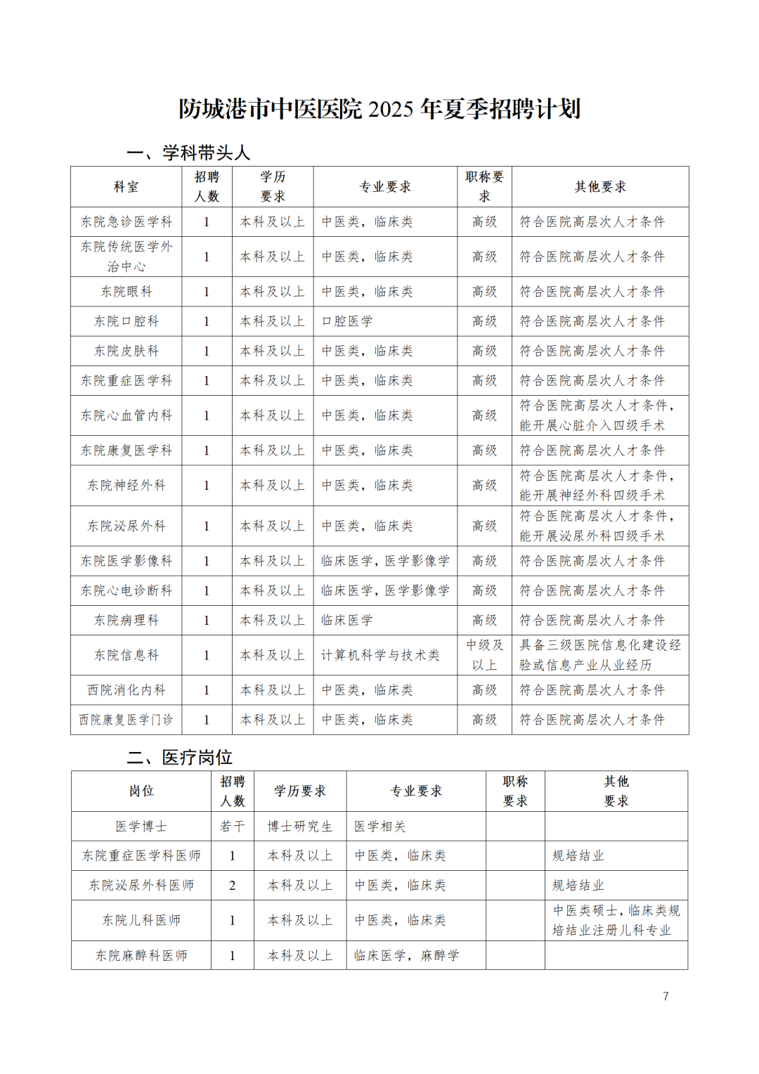 (二)具體招聘辦法由防城港市中醫(yī)醫(yī)院人事科負責解釋。