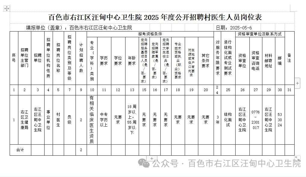3.報(bào)名地點(diǎn):百色市右江區(qū)汪甸中心衛(wèi)生院三樓辦公室,聯(lián)系人:林紅青 聯(lián)系電話:0776-2301017。因報(bào)名信息填寫(xiě)錯(cuò)漏等所造成的后果,本單位不負(fù)任何責(zé)任。