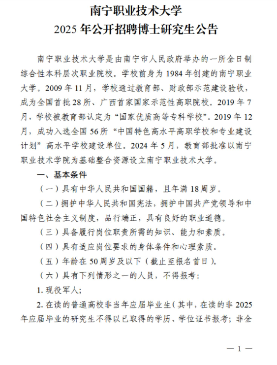 2025年南寧職業(yè)技術大學公開招聘博士研究生公告