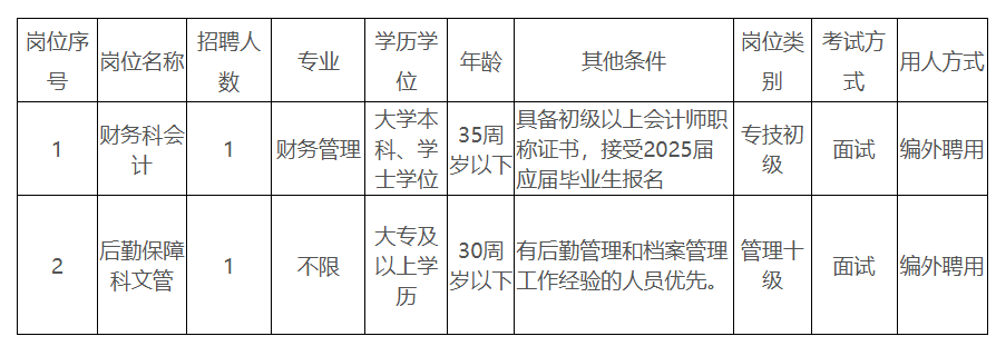 財務科會計1人,后勤保障科文管1人