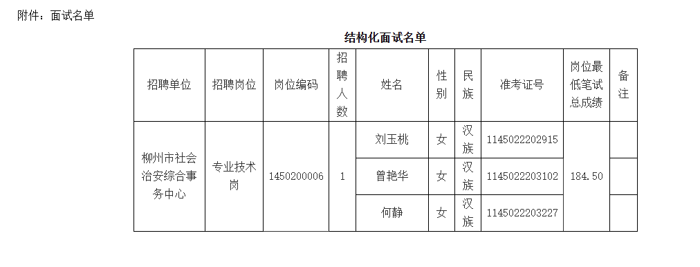 2.面試崗位:柳州市社會治安綜合事務中心專業(yè)技術崗