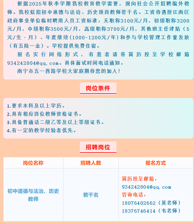 原文標題:快報名!南寧市五一西路學校招聘老師啦!