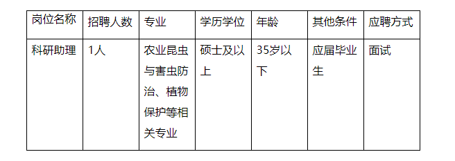 廣西農(nóng)業(yè)科學(xué)院植物保護(hù)研究所糧食作物害蟲防控團(tuán)隊(duì)聚焦水稻、玉米等糧食作物重大害蟲,開展演變規(guī)律和災(zāi)變機(jī)制、監(jiān)測(cè)預(yù)警、抗藥性、抗蟲性及綠色防控關(guān)鍵技術(shù)研究及應(yīng)用。根據(jù)工作需要,現(xiàn)面向社會(huì)公開招聘科研助理(編制外工作人員)1名。現(xiàn)將有關(guān)事項(xiàng)公告如下: