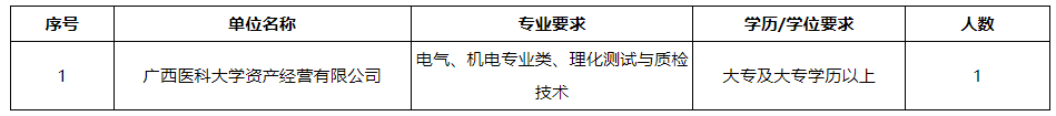 廣西醫(yī)科大學資產經營有限公司(以下簡稱公司)是由廣西醫(yī)科大學于2011年8月3日獨資設立,經營管理廣西醫(yī)科大學經營性國有資產和對外投資的股權。公司依托學校和附屬醫(yī)院的資源優(yōu)勢,圍繞醫(yī)藥、養(yǎng)老、醫(yī)學檢驗、大健康項目等領域開展投資與合作,積極探索產學研協(xié)同發(fā)展。根據工作需要,現面向社會公開招聘工勤崗工作人員,具體招聘事宜如下: