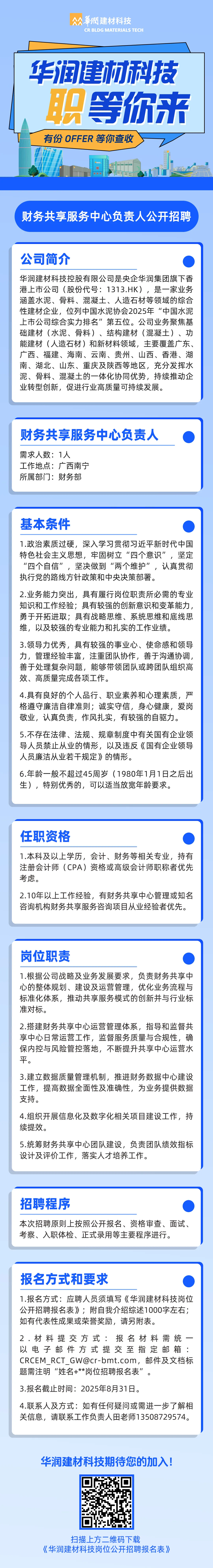 2025年華潤建材科技財務(wù)共享服務(wù)中心負責(zé)人公開招聘公告