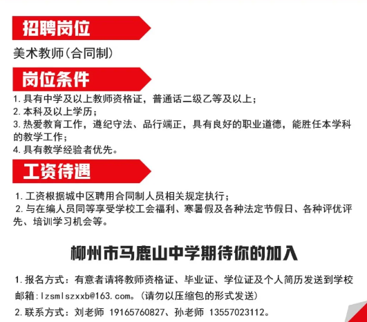 2025年柳州市馬鹿山中學招聘美術教師