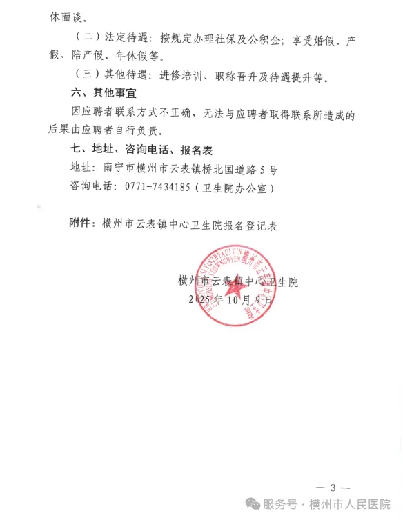2025年橫州市云表鎮(zhèn)中心衛(wèi)生院公開(kāi)招聘編外衛(wèi)生專業(yè)技術(shù)人員的公告