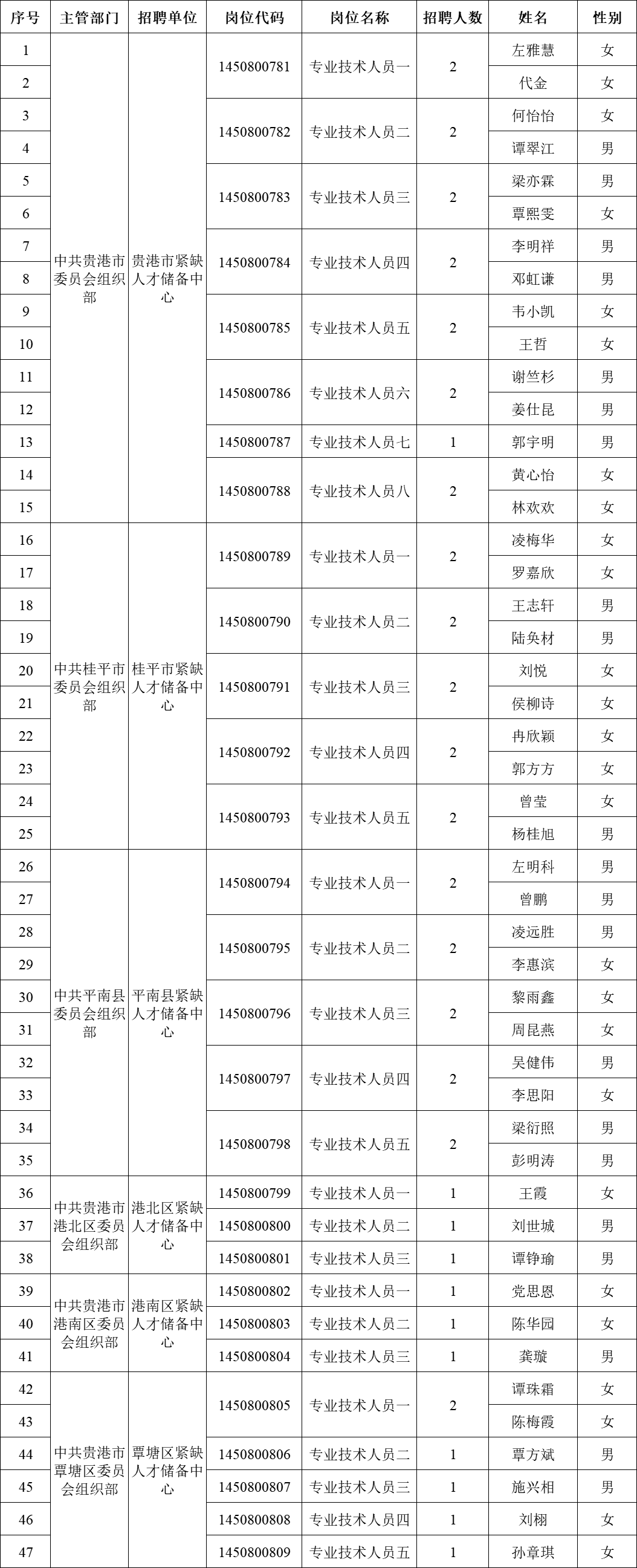 原文標題:2025年貴港市引進重點領域重點產業(yè)急需緊缺(高層次)人才進入考察人員名單公告