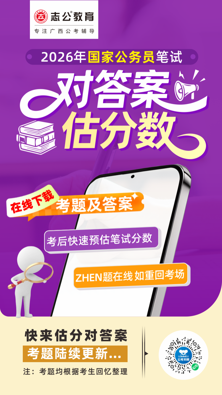 剛走下考場?志公教育為廣西考生整理了2026國考筆試考及答案在線下載服務(wù),推出在線估分平臺,助你快速預(yù)估分數(shù)。