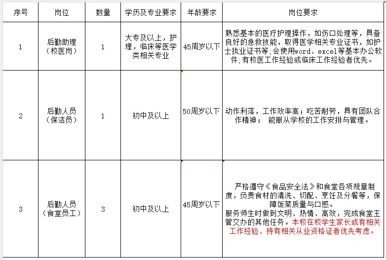 3.具有相應崗位文化程度,身體健康、手腳敏捷、具有團隊合作精神,能服從學校安排及管理。