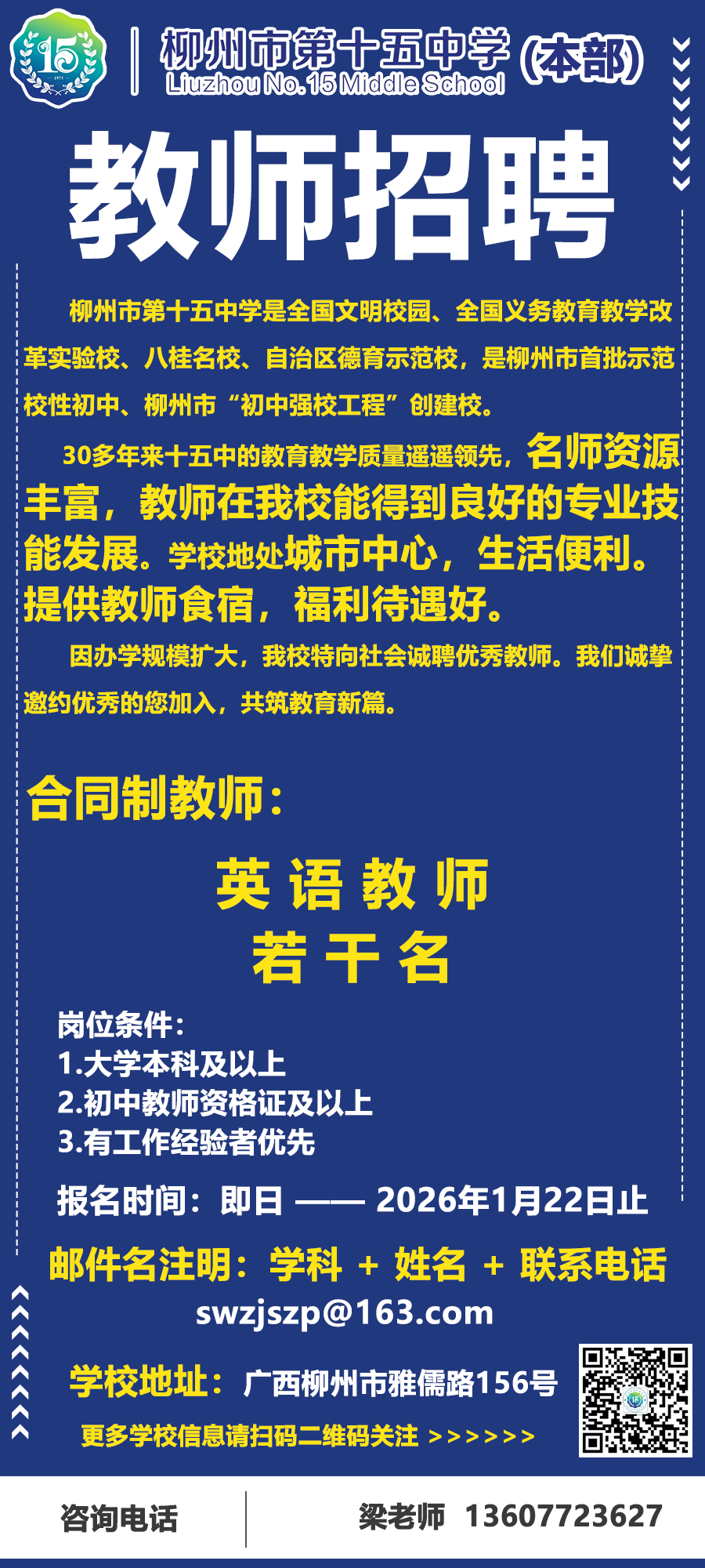 2026年柳州市第十五中學(xué)本部招聘公告