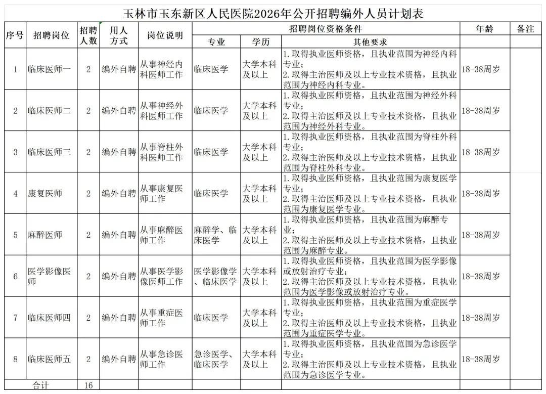 (1)《玉林市玉東新區(qū)人民醫(yī)院2026年公開招聘編外工作人員報名登記表》(附件),所填寫信息必須真實(shí)無誤,凡弄虛作假的,一律取消報名資格;