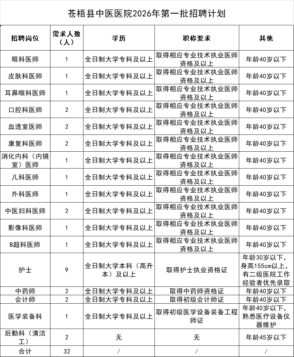 (二)現(xiàn)場(chǎng)報(bào)名時(shí)間:上午08:00-12:00,下午14:30-17:30,地點(diǎn):蒼梧縣中醫(yī)醫(yī)院門診三樓院辦辦公室 。