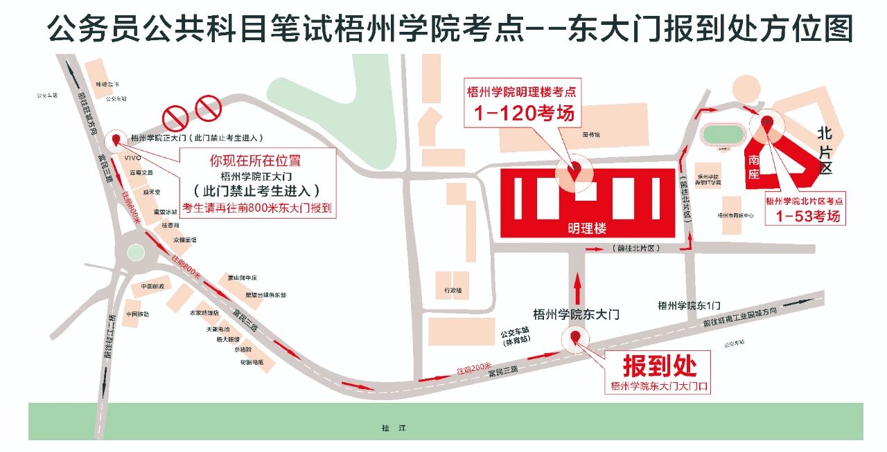(九)梧州學(xué)院明理教學(xué)樓、梧州學(xué)院北片區(qū)(萬秀區(qū)富民三路82號)特別提醒:明理教學(xué)樓和北片區(qū)屬不同考點(diǎn),請考生看清楚準(zhǔn)考證,切勿走錯(cuò)考場。