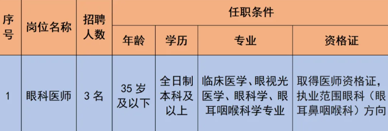 根據(jù)科室業(yè)務(wù)發(fā)展需要,面向社會(huì)公開(kāi)招聘眼科醫(yī)師3名,具體崗位要求如下: