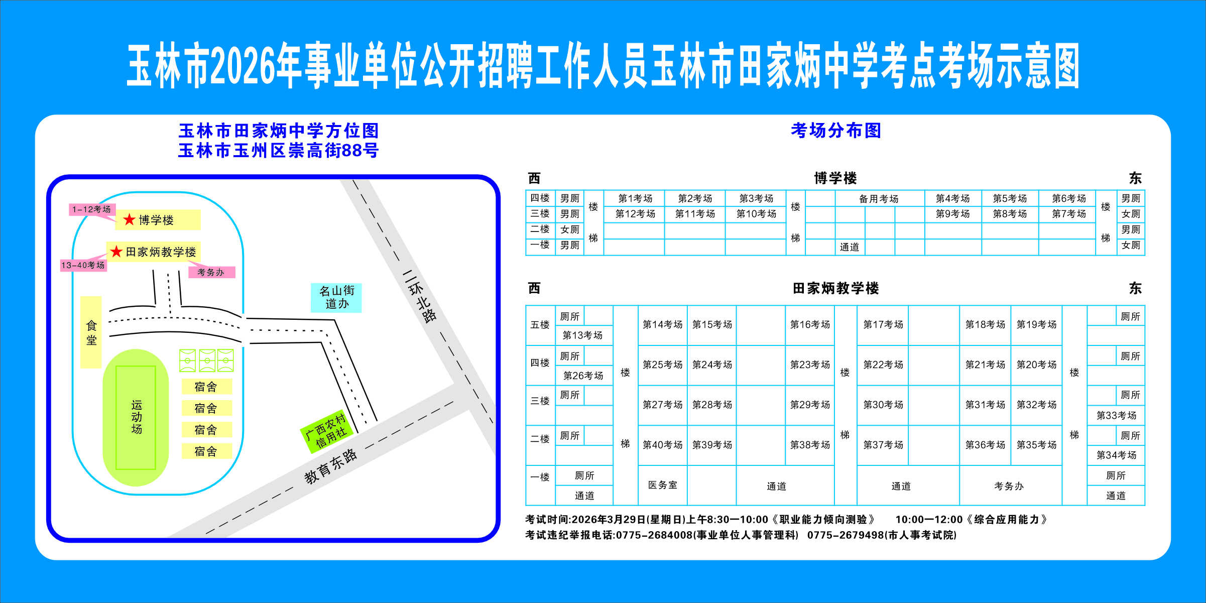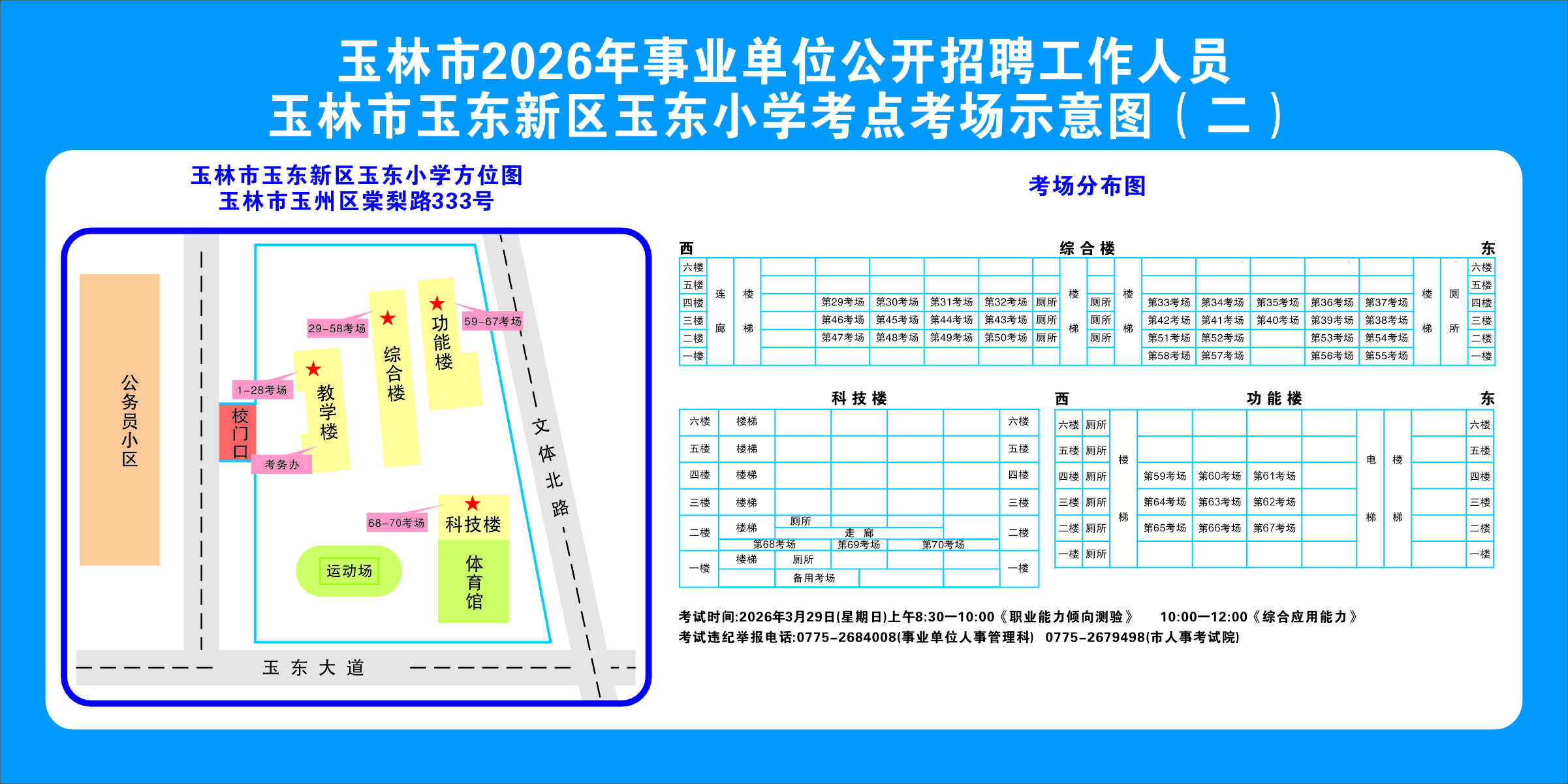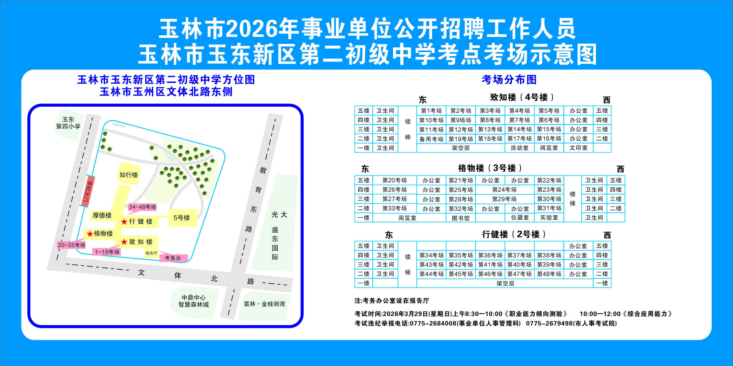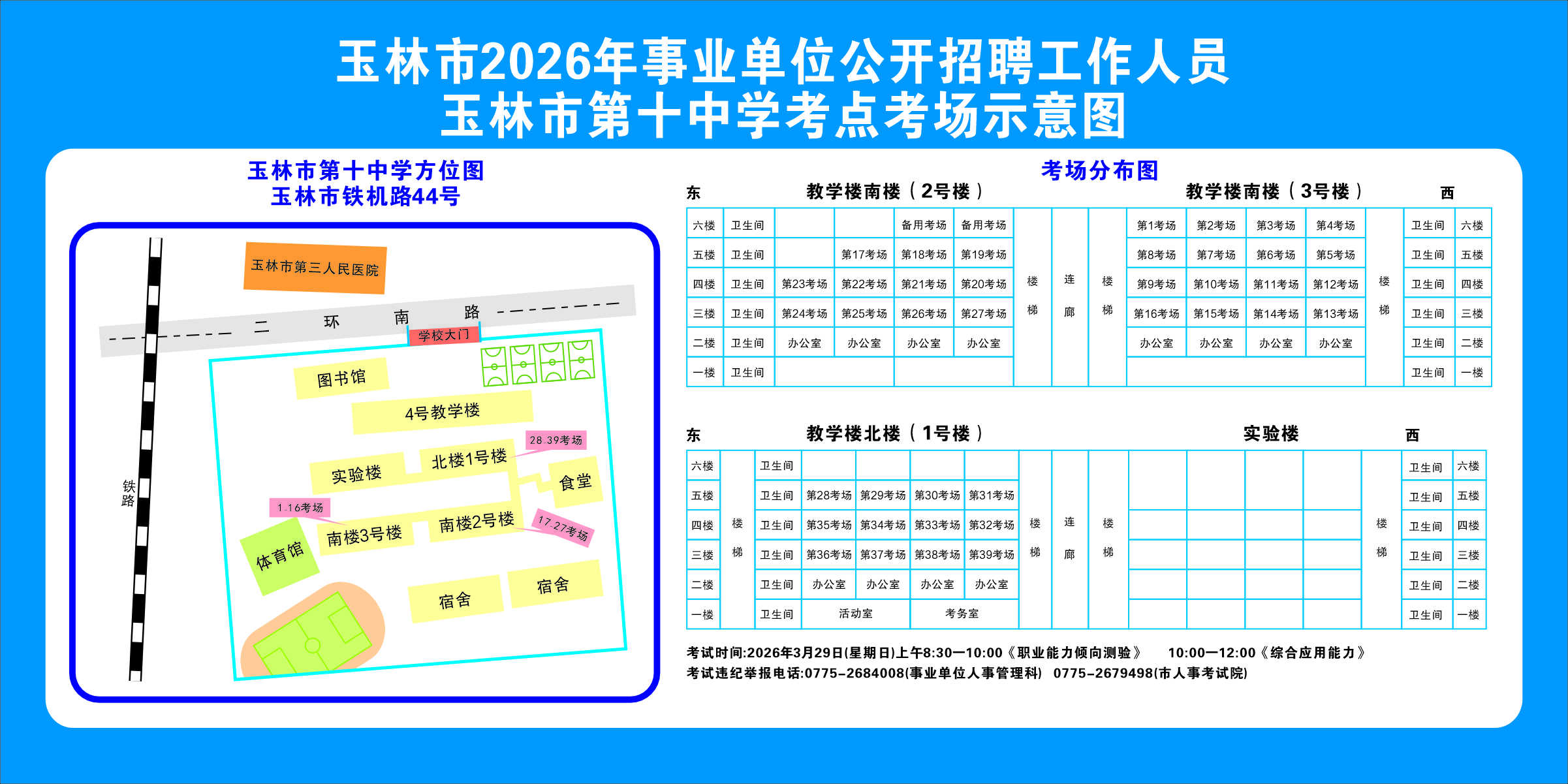 2.需要特別注意的是:玉林市第一職業(yè)中等專業(yè)學校考點是設在該校的東校區(qū)(人民東路東235號);玉林市第一中學考點分為運嶺路校區(qū)(二環(huán)北路1228號)、大北路校區(qū)(大北路453號)。